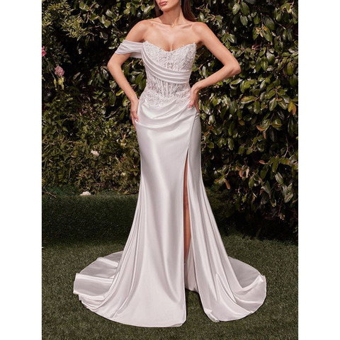 Corsé de encaje con cuentas Slit elegante satén sirena graduación vestido de noche para mujer